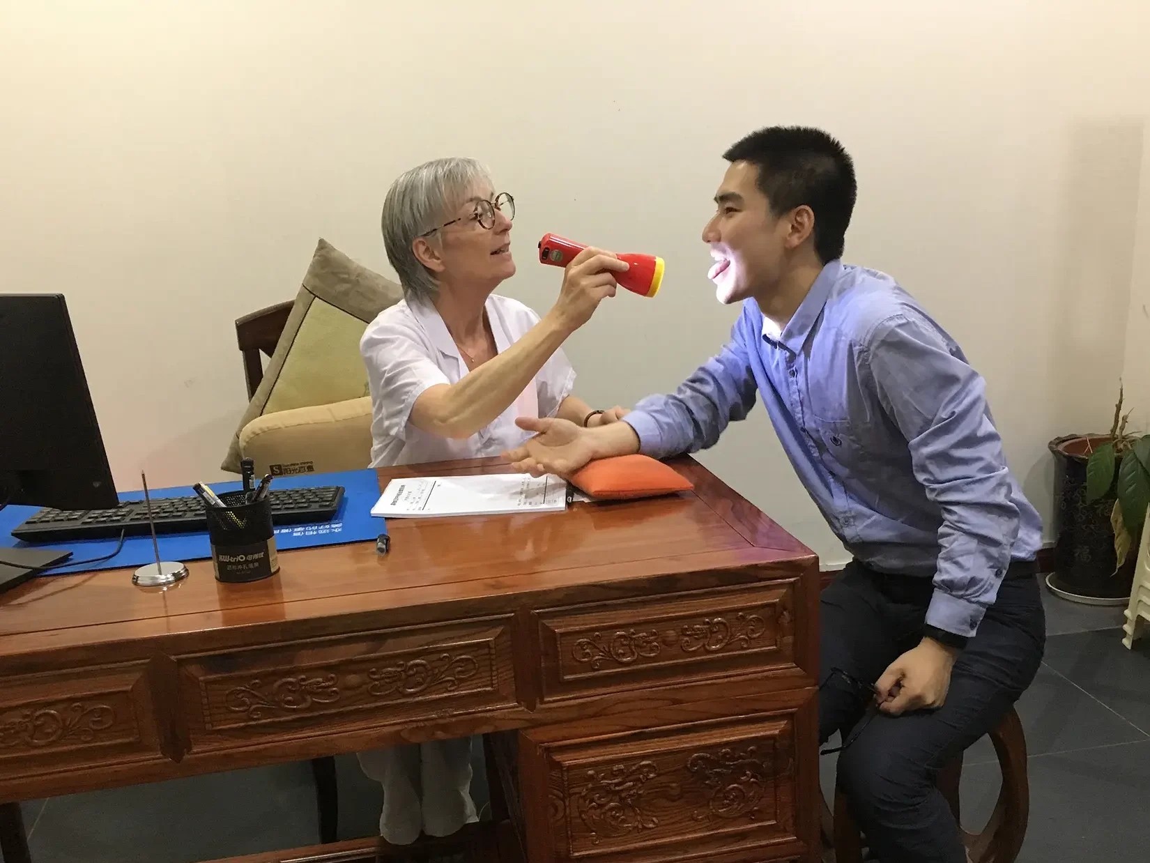 Examen du teint, de la posture, des mouvements et observation de la langue.